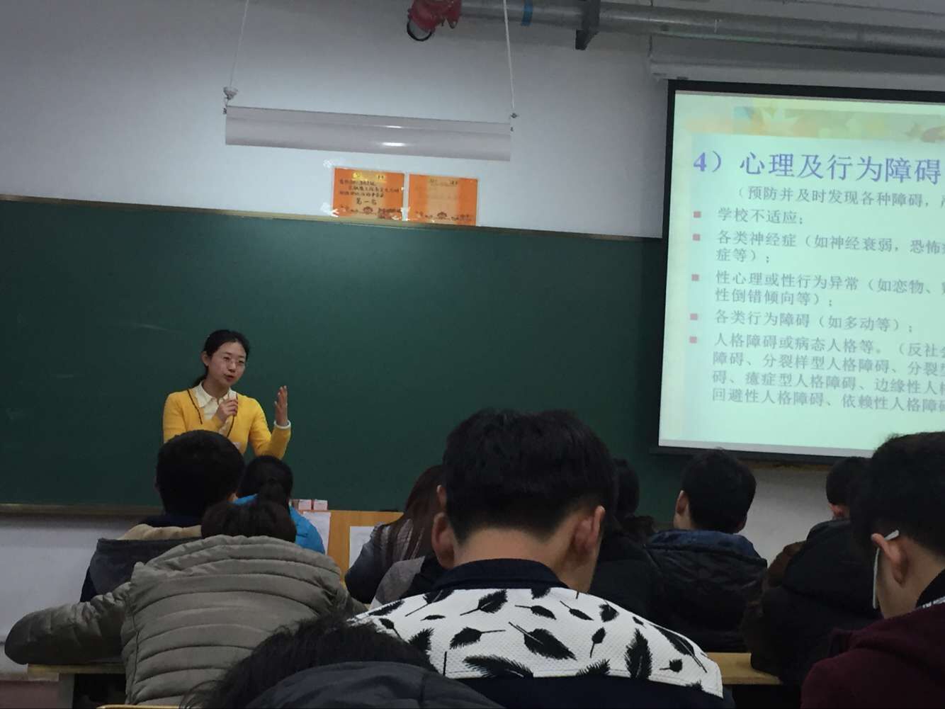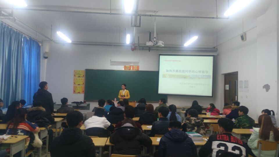 为加强心理委员工作能力,强化心理危机网络建设,2015年12月16日下午在教学楼209教室举行心理委员工作技能专项培训之朋辈辅导,主讲老师是学生处大学生心理健康教育中心的刘晓佳老师,全体大一心理委员和心理协会部分学生干部参加此次培训。