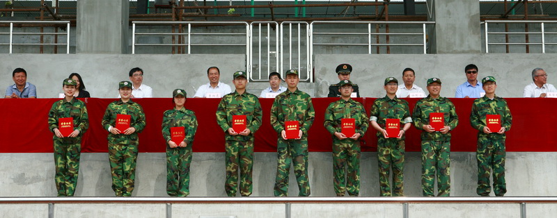 最后,曹炳志副书记代表学院发表了讲话。首先,他对65307部队多年来对我院军训工作的支持和全体教官在今年军训工作中的付出表达了诚挚的谢意。然后,他从教官们的精心训练和耐心教导为同学们树立了光辉榜样;同学们严守纪律和不畏困难,保障了军训工作顺利进行;各职能部门精心组织和密切合作,展现了讲团结、比奉献、能打拼的学工精神、军事理论课教师克服困难开展军事理论教育等几个方面对军训工作进行了总结。最后,他强调了大学生征兵工作的重要意义,解读了学院参军复员回校复学的优惠政策,号召广大学生响应国家号召,到解放军部队这个大学校里去锻炼自己、完善自己,为实现中华民族伟大复兴的中国梦而努力。