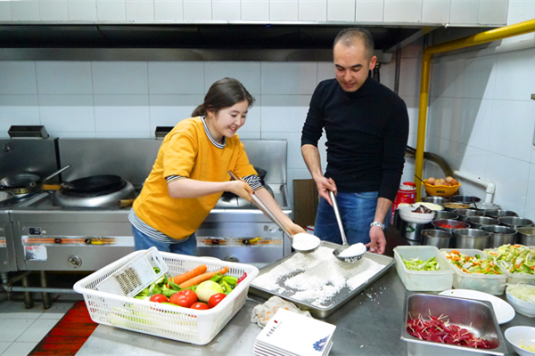 艾克拜尔江•买买提老师和木妮热木•阿布力孜同学制作手抓饭