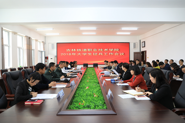为深入学习领会习近平总书记给南开大学新入伍大学生重要回信精神,贯彻落实全国2018年普通高等学校大学生征兵工作电视电话会议精神,圆满完成吉林省政府赋予我院的大学生征兵任务,根据吉林省人民政府征兵办公室和吉林省教育厅吉征联〔2018〕29号《关于进一步做好大学生征兵工作的通知》的文件部署安排,学生处于5月14日在办公楼第二会议室召开了2018年大学生征兵工作会议。学院党委副书记徐彤宝、永吉县武装部部长魏英喆、政治工作科科长尚超、学院党委宣传统战部、学生处、教务处、招生就业处、安全保卫处、财务处、院团委等部门负责人及各分院党总支书记、学办主任、分团委书记、辅导员参加了会议。会议由学院武装部部长、学生处处长刘树全主持,