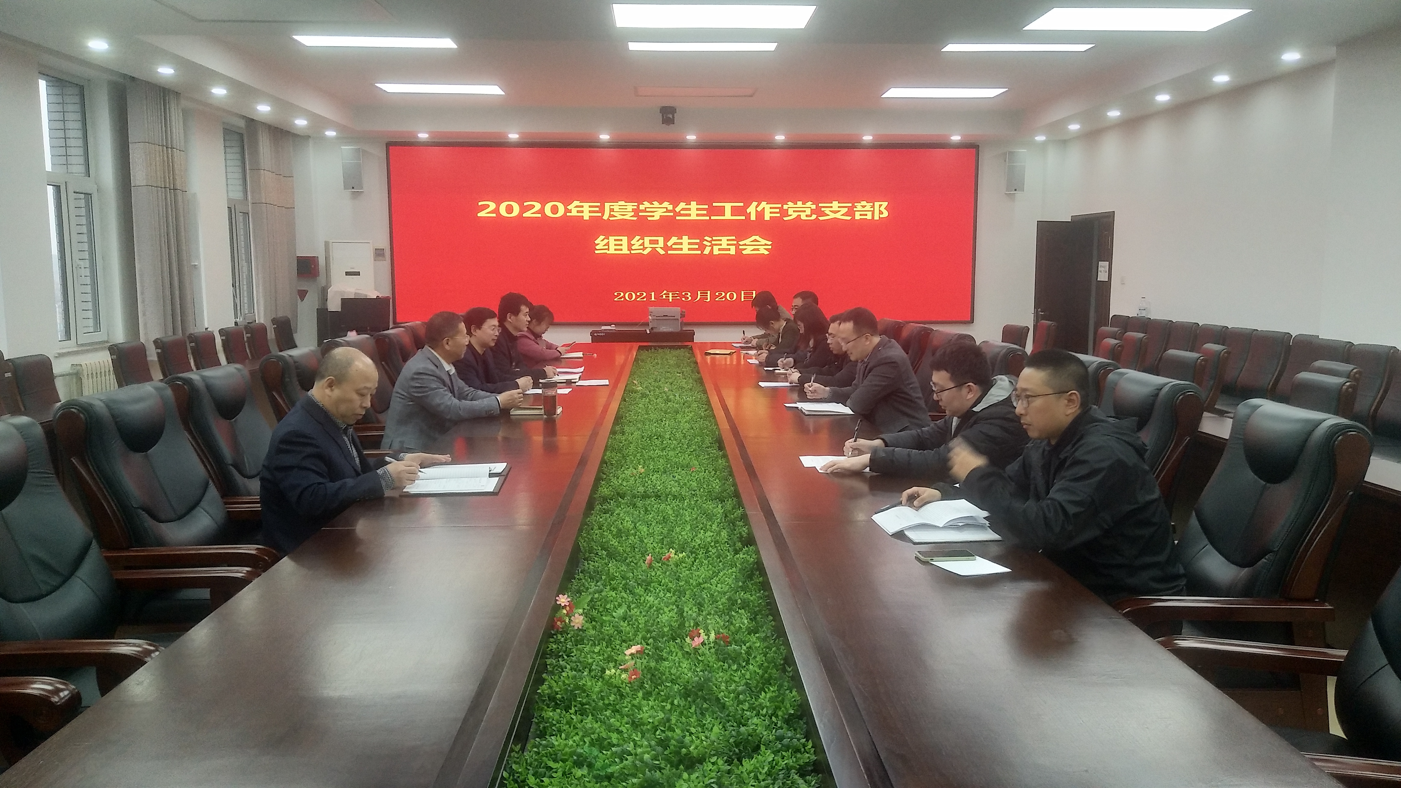 根据学校《关于认真召开2020年度学院基层组织生活会和开展民主评议党员工作的通知》要求。3月20日,学生工作党支部召开2020年度组织生活会和民主评议党员会议,校党委副书记徐彤宝以普通党员身份参加了双重组织生活会,机关党总支书记周环宇同志受校党委委派到会指导,会议由学生工作党支部书记李原福主持。