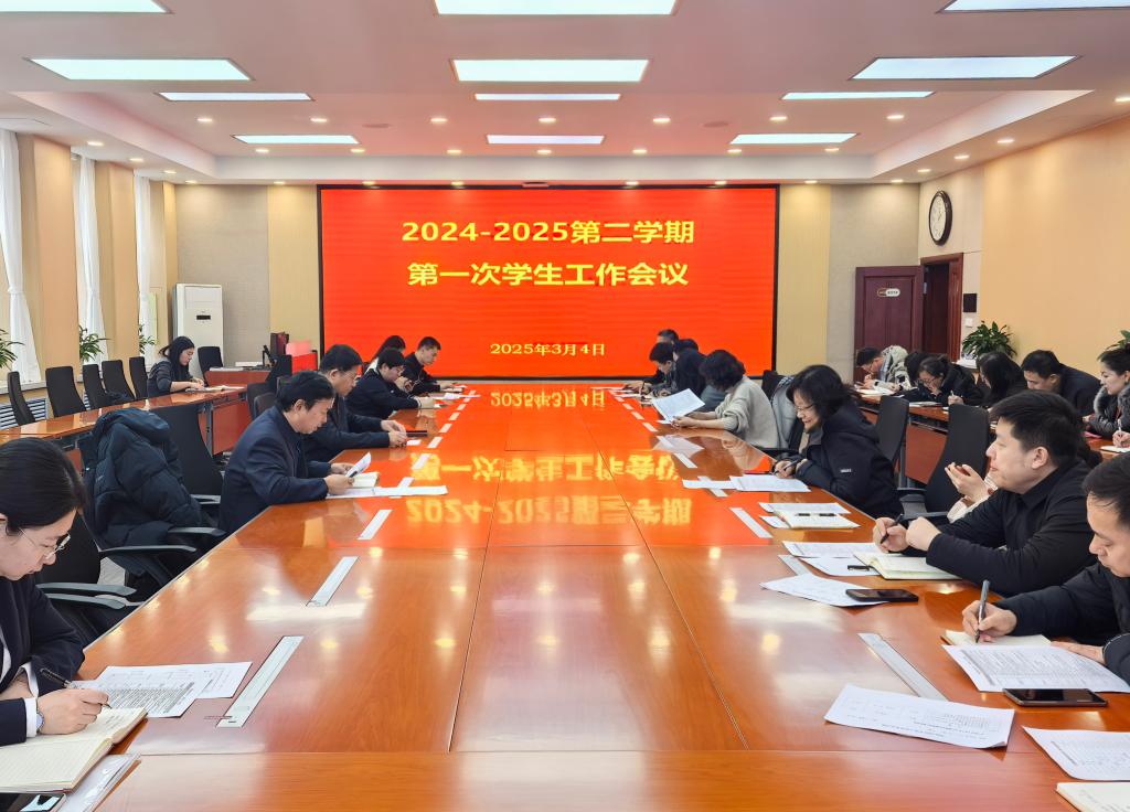 2025年3月4日下午,学校2024-2025学年第二学期第一次学生工作会议在第二会议室召开。学校党委副书记苏建国,学生工作处、校团委、心理健康教学研究院全体成员以及各学院党总支书记、党总支副书记、学办主任参加会议。会议由学生工作处处长周环宇主持。