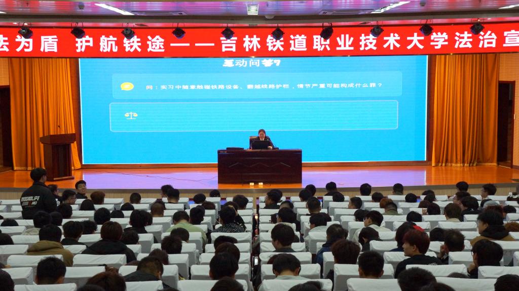 张玉华检察官结合学校铁路行业特色,聚焦大学生易发多发违法犯罪风险,通过以真实案例以案释法,深入剖析网络时代青年易触碰的法律红线,引导同学们牢固树立法治意识、严守法律底线,自觉做到尊法学法守法用法,以法治护航青春成长与职业发展。此次宣讲既有理论层面的法律知识普及,又有实践层面的风险防范指导,为同学们上了一堂生动实用、受益匪浅的法治教育课。
